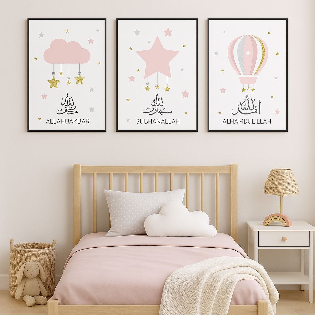 Tableau Décoration Murale Islamique – Choix de Calligraphies (Al Hamdu Lillah, Allahu Akbar, Subhan Allah)